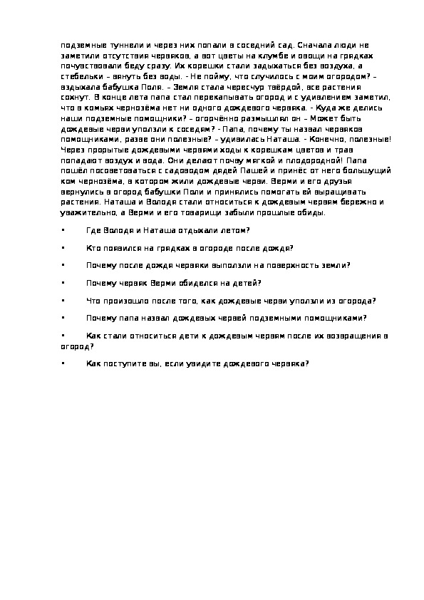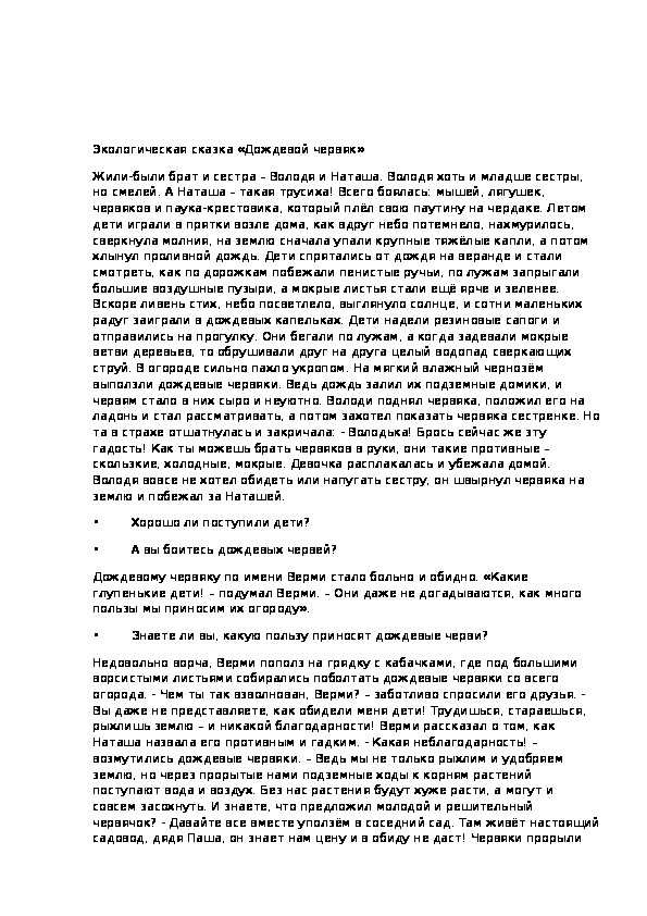 Что он скажет Андрею и Пете, если встретит их?Экологическая сказка «Дождевой червяк»