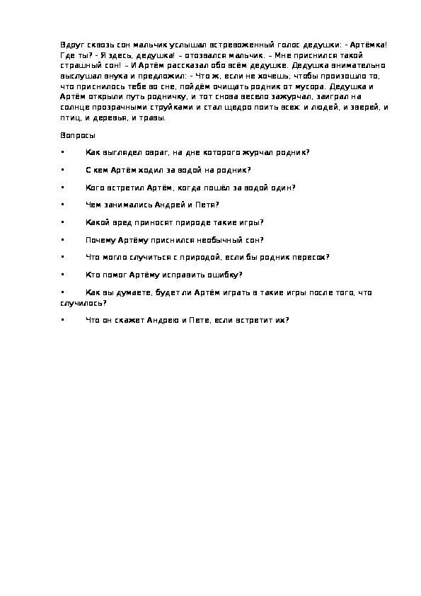 что приснилось тебе во сне, пойдём очищать родник от мусора. Дедушка и