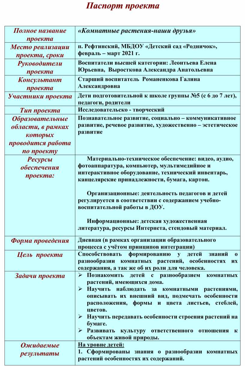 Паспорт проекта