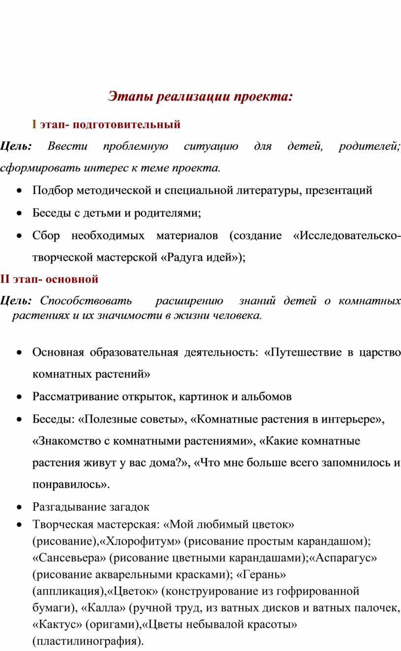 Этапы реализации проекта: