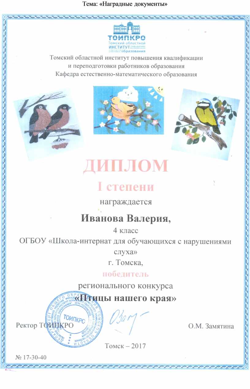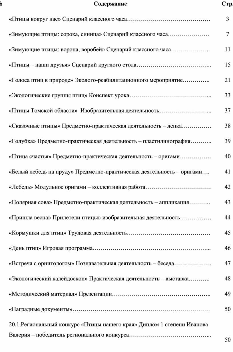 20.1.Региональный конкурс «Птицы нашего края» Диплом 1 степени Иванова Валерия – победитель регионального конкурса…………………………………... |