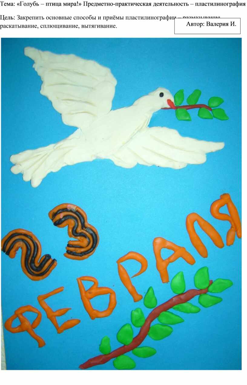 Тема: «Голубь – птица мира!» Предметно-практическая деятельность – пластилинография
