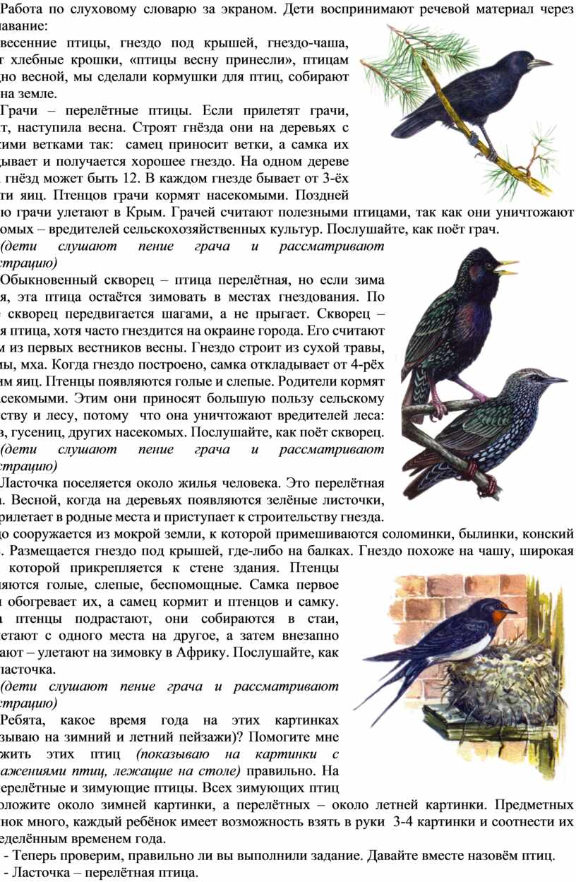 Расширять представления о перелётных птицах, развивать интерес к жизни птиц