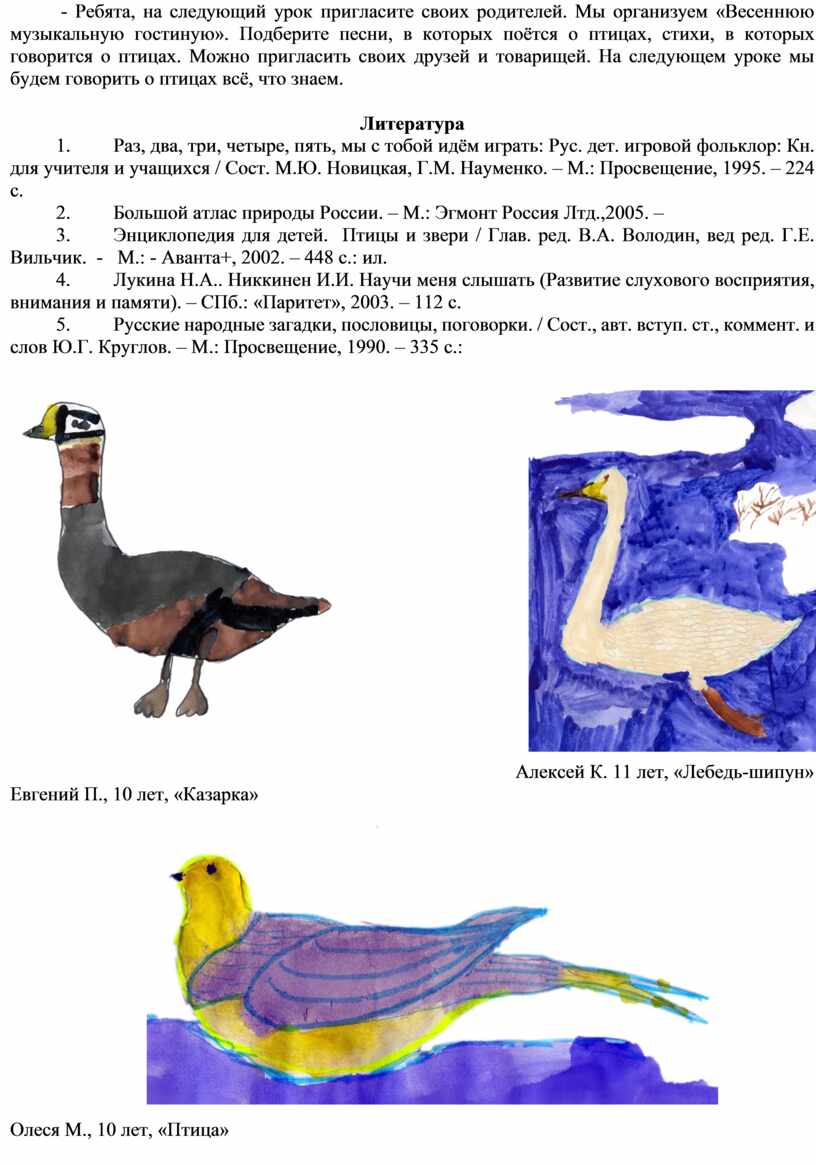 Цель: закрепить методы передачи пропорций частей тела птиц Томской области.
