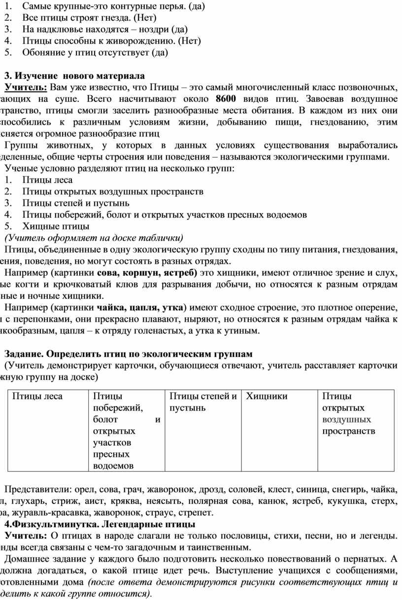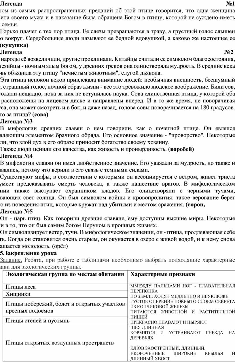 «Экологические группы птиц» Конспект урока…………………………………... |