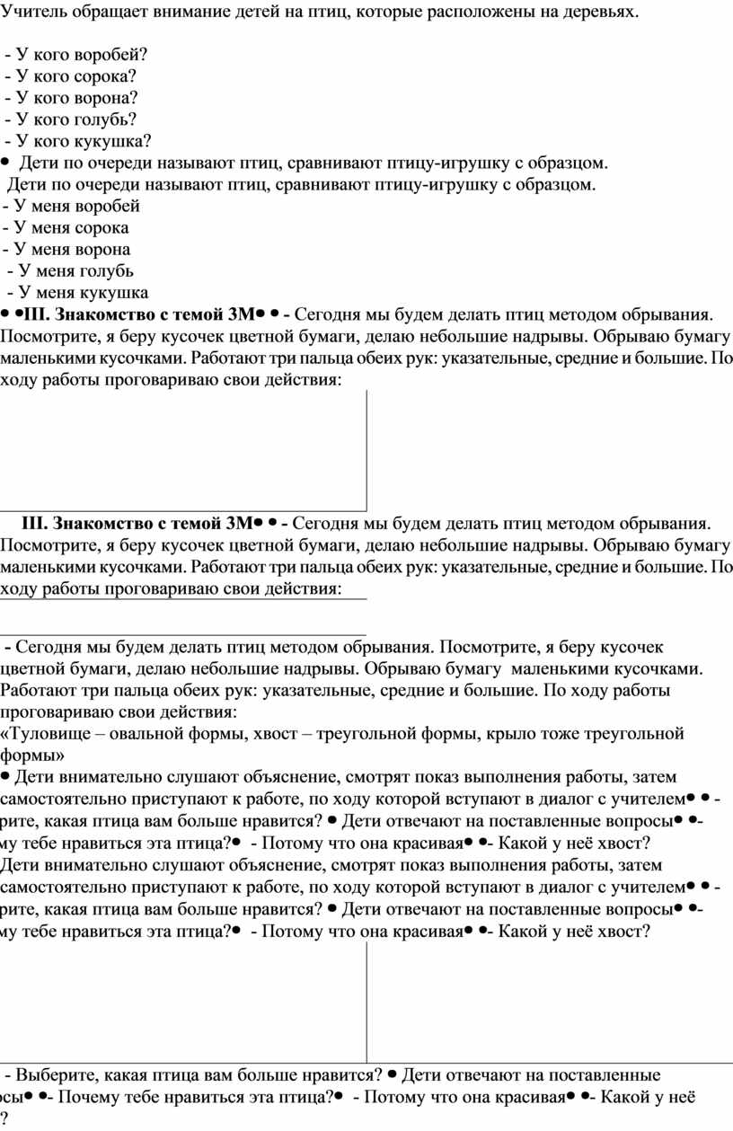 Тема: «Пришла весна, прилетели птицы» Изобразительная деятельность