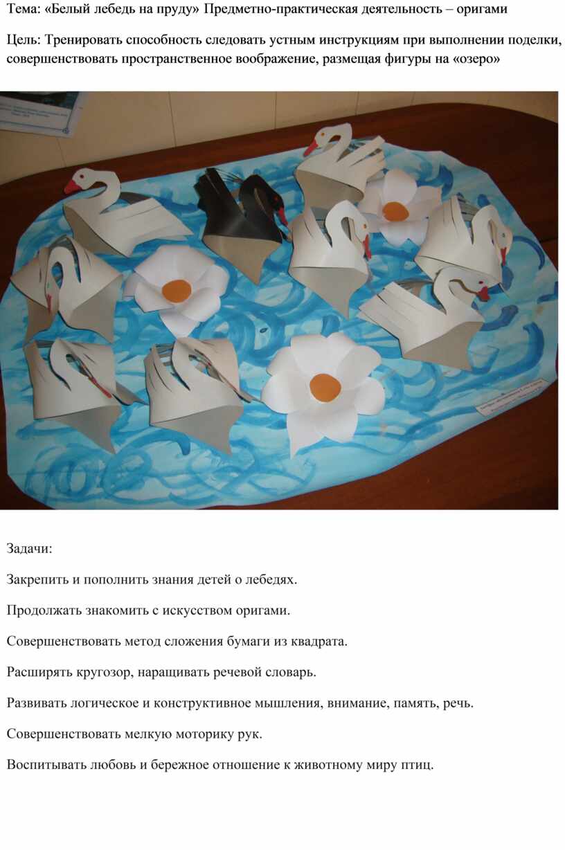 Тема: «Белый лебедь на пруду» Предметно-практическая деятельность – оригами