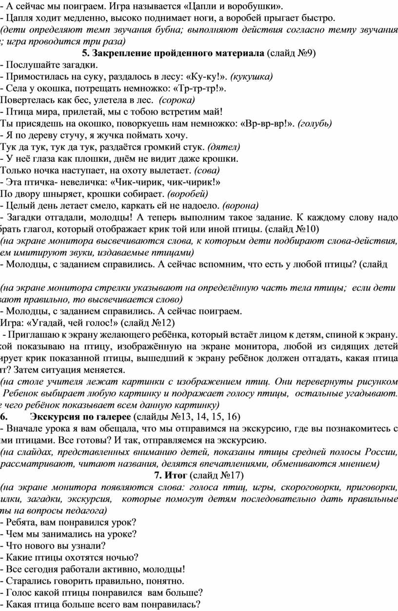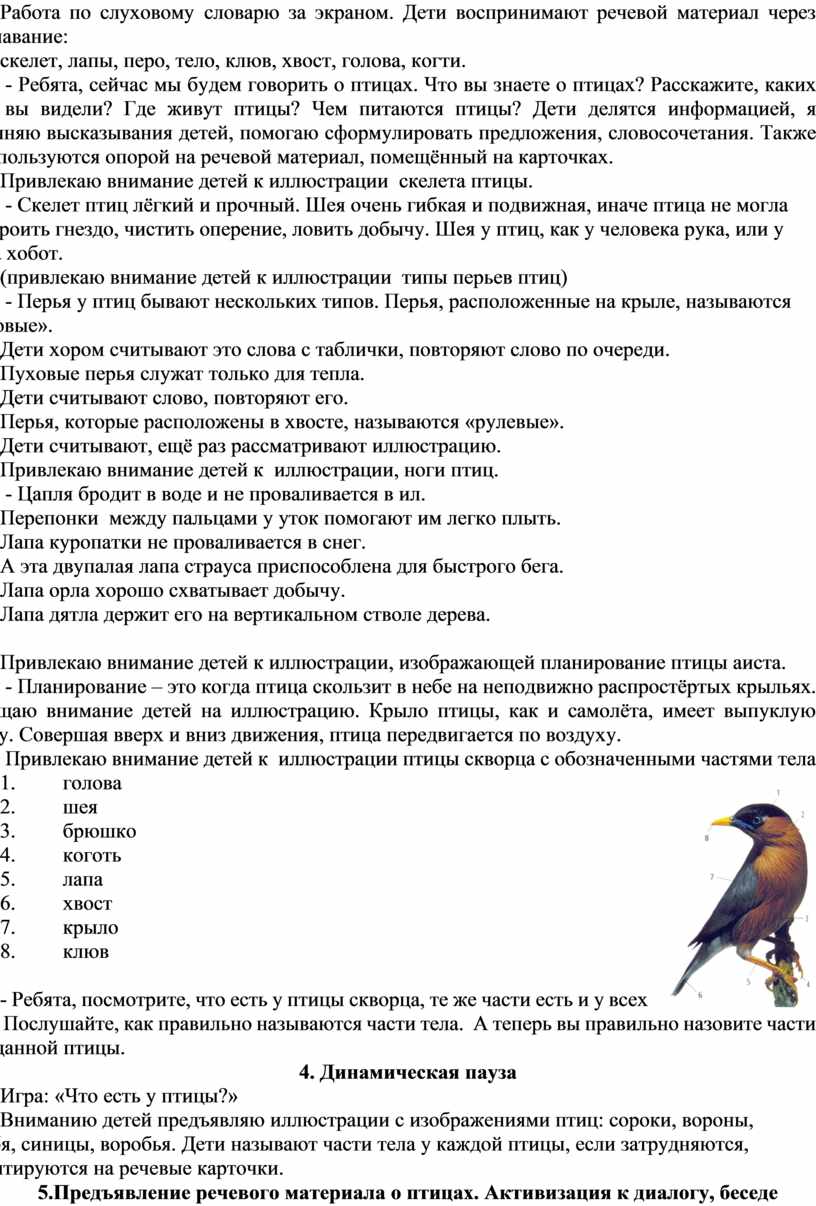 1. учебная – дать детям понятия о птицах, строении тела, местах обитания птиц, пище;