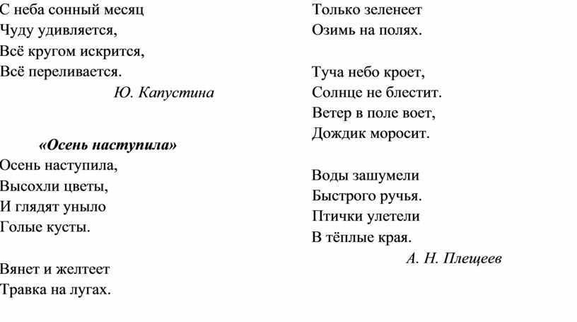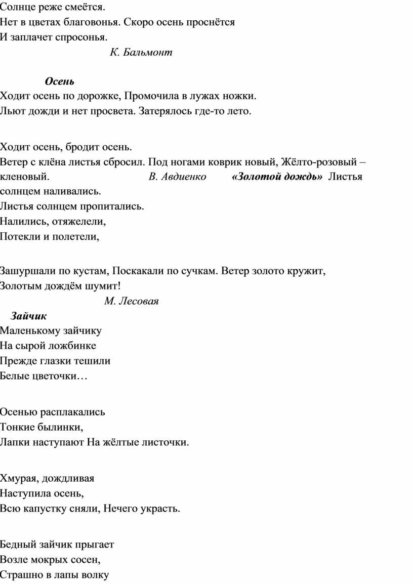 Все деревья облетели, Зеленеют только ели, Стали голыми леса. Днём и ночью дождик льёт,