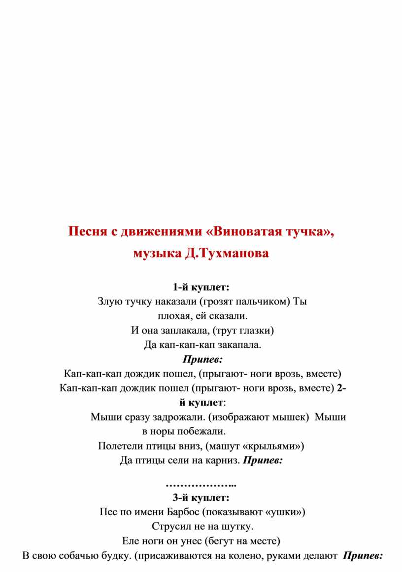 Разучивание песни «Виноватая тучка», музыка Д. Тухманова.