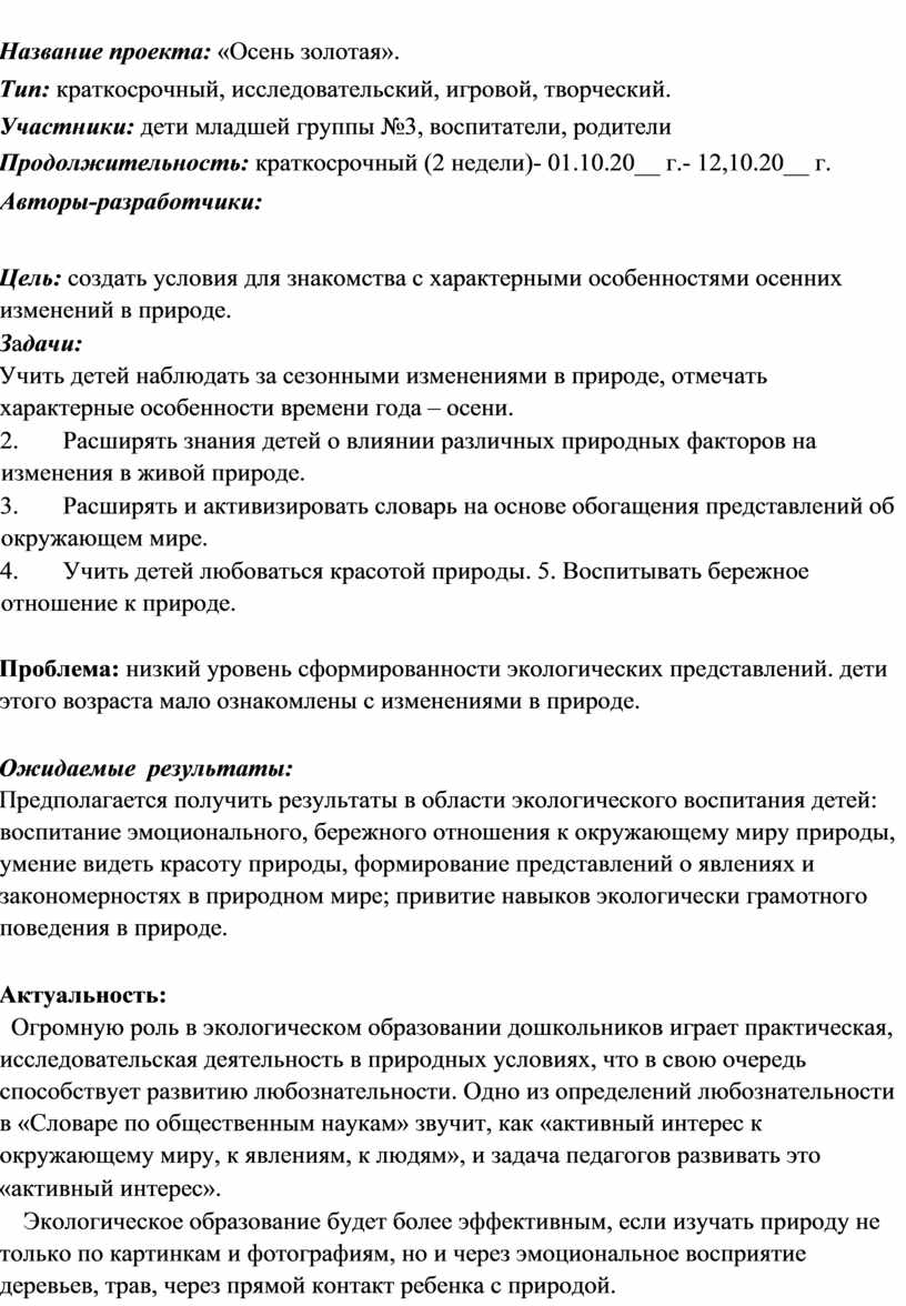 Продолжительность: краткосрочный (2 недели)- 01.10.20__ г.- 12,10.20__ г. Авторы-разработчики: