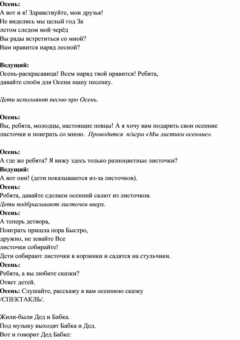 Спасибо тебе Осень за добрую сказку и наше веселье.