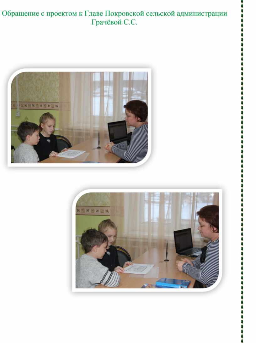 Обращение с проектом к Главе Покровской сельской администрации Грачёвой С.С.