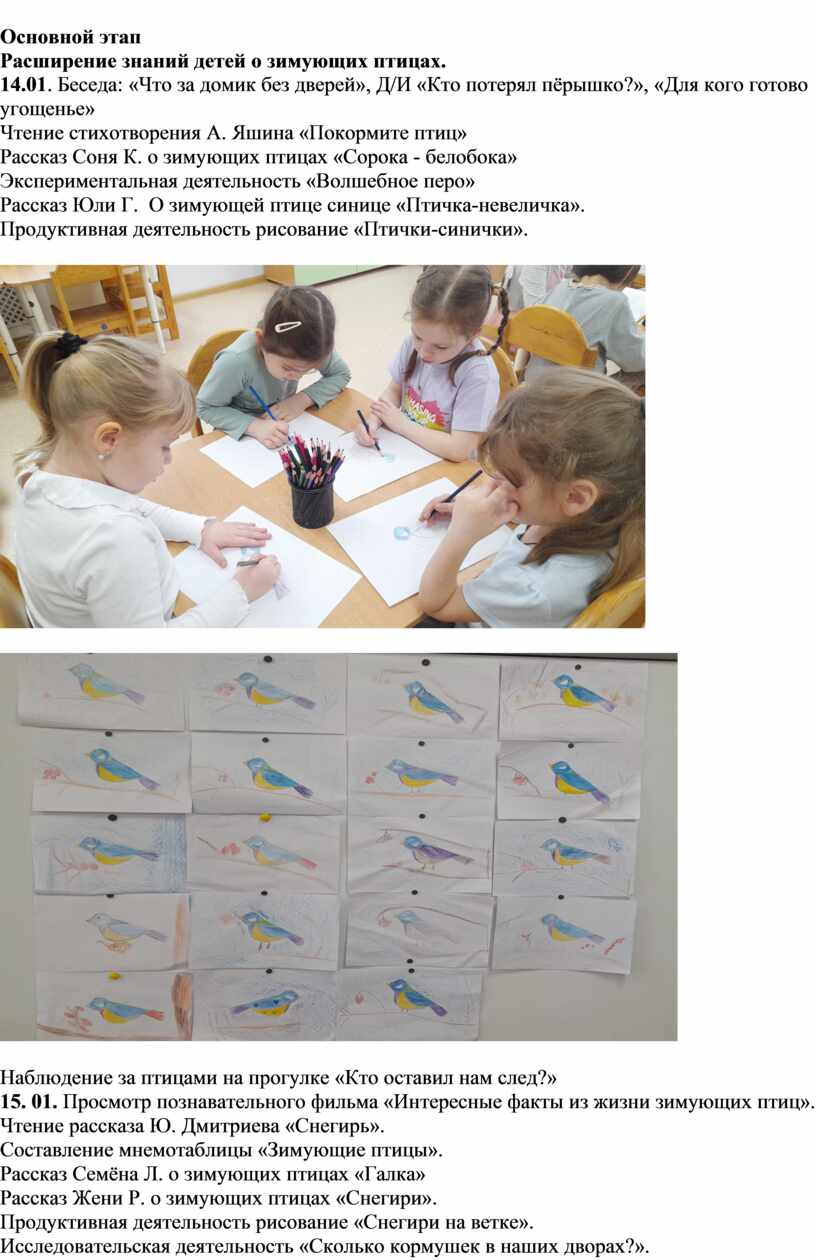Цель: расширение и обогащение знаний о зимующих птицах.