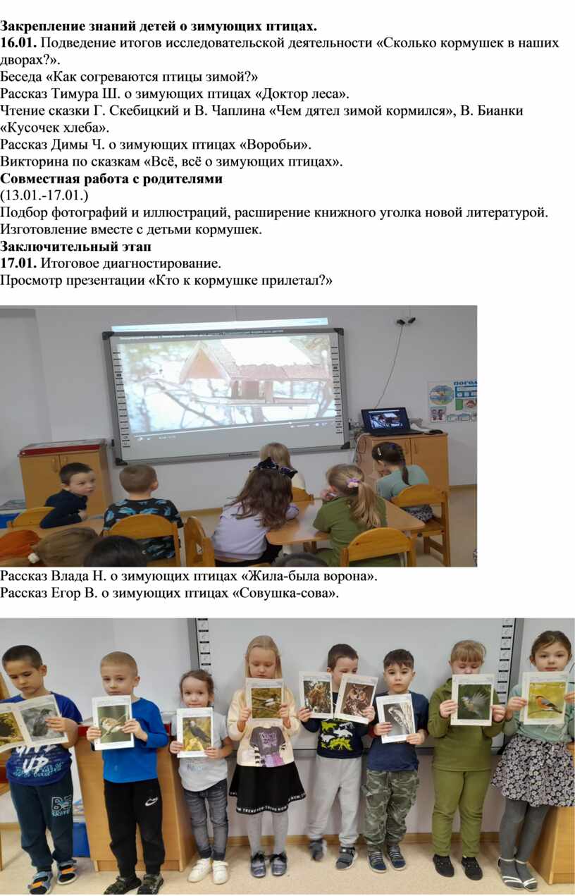 16.01. Подведение итогов исследовательской деятельности «Сколько кормушек в наших дворах?».