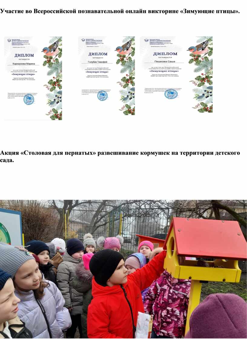 Участие во Всероссийской познавательной онлайн викторине «Зимующие птицы».
