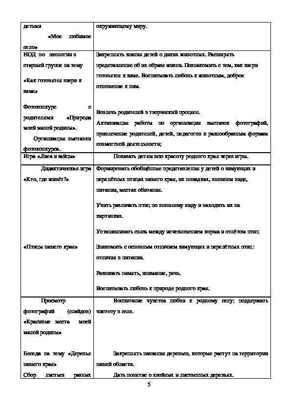 Знакомить детей с природой родного края, с разнообразием флоры и фауны. Сформировать у детей