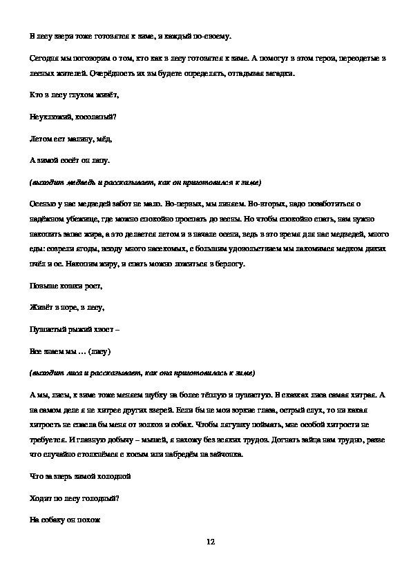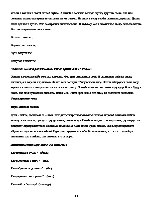 готовятся к зиме. Воспитывать любовь к животным, доброе