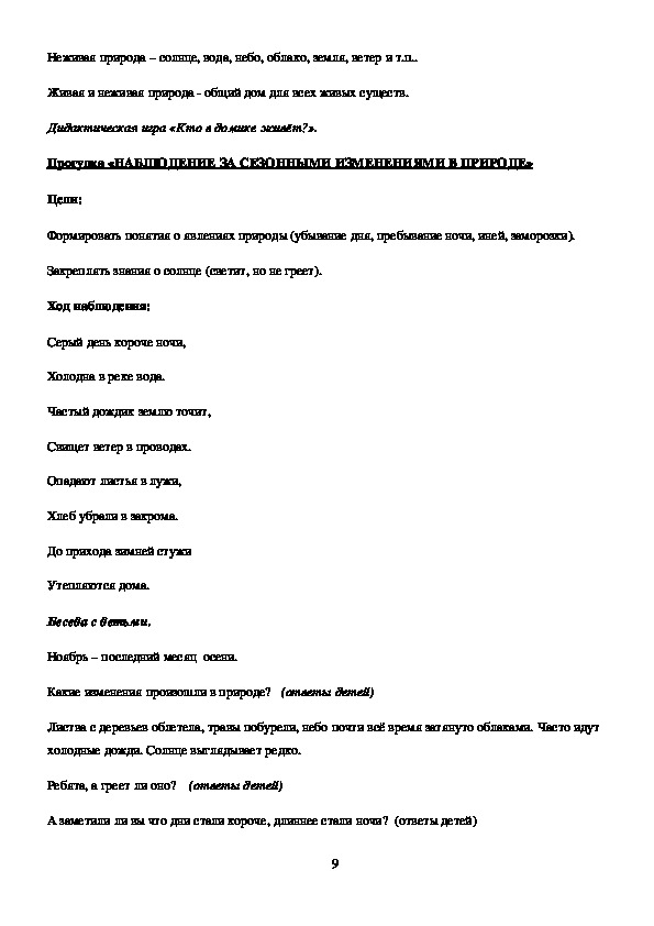Формировать понятия о явлениях природы (убывание дня,