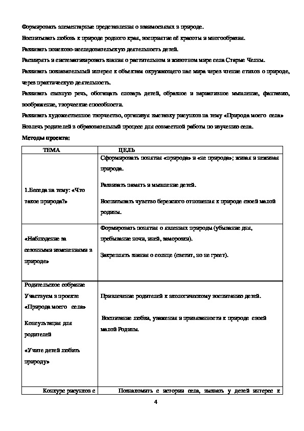 Расширять и систематизировать знания о растительном и животном мире села Старые Челны.