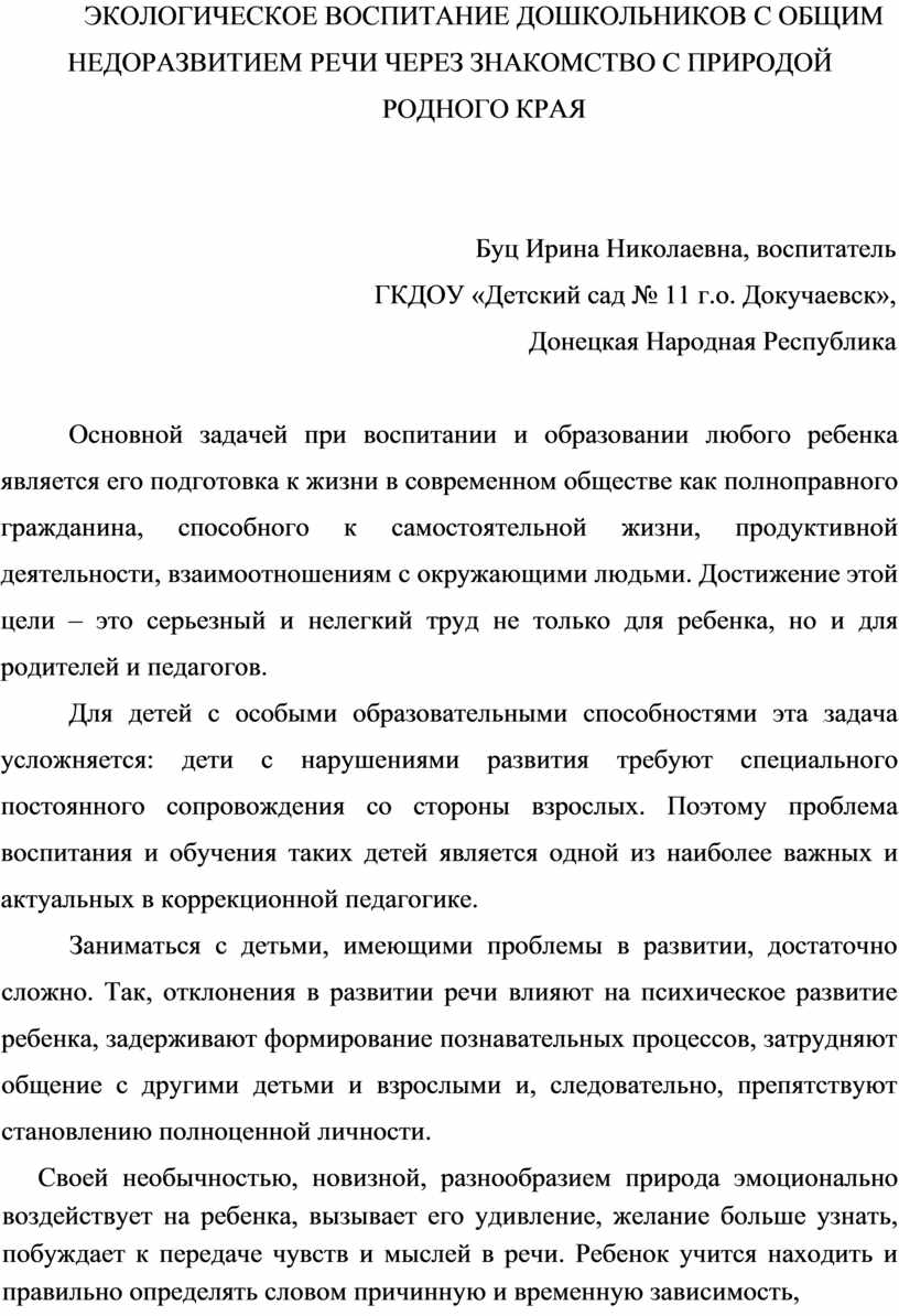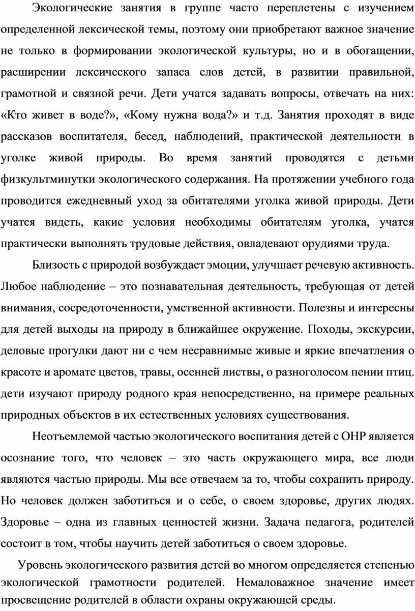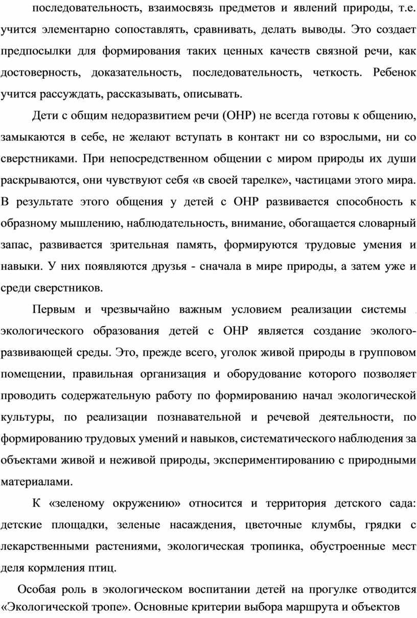 ЭКОЛОГИЧЕСКОЕ ВОСПИТАНИЕ ДОШКОЛЬНИКОВ С ОБЩИМ НЕДОРАЗВИТИЕМ РЕЧИ ЧЕРЕЗ ЗНАКОМСТВО С ПРИРОДОЙ