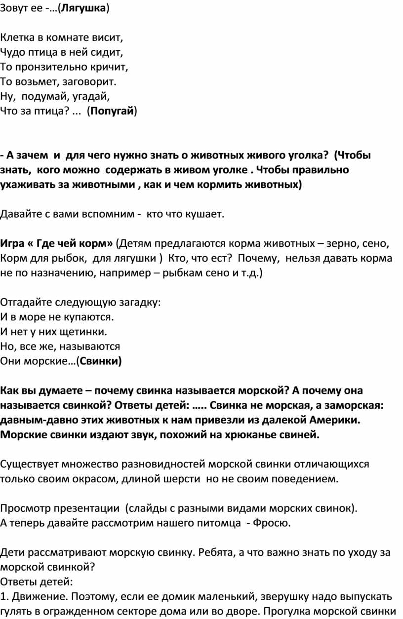 - А зачем и для чего нужно знать о животных живого уголка? (Чтобы знать, кого можно содержать в живом уголке . Чтобы правильно ухаживать за животными , как и чем кормить животных)