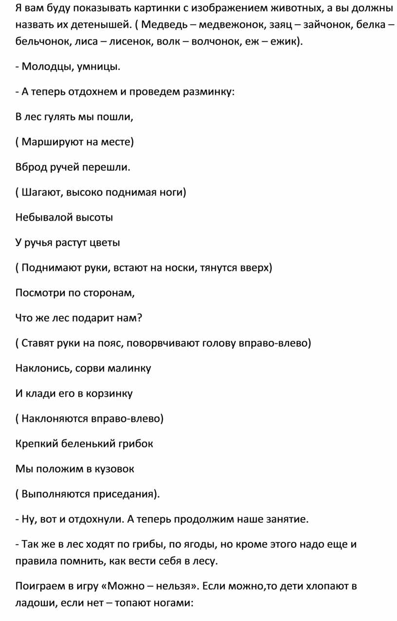 - Надеюсь, что правила поведения в лесу вы никогда не забудете. Давайте будем добрыми и мы не будем ломать ветки, топтать цветы, пугать птиц, тогда и лес отблагодарит за наше хорошее отношение к нему.
