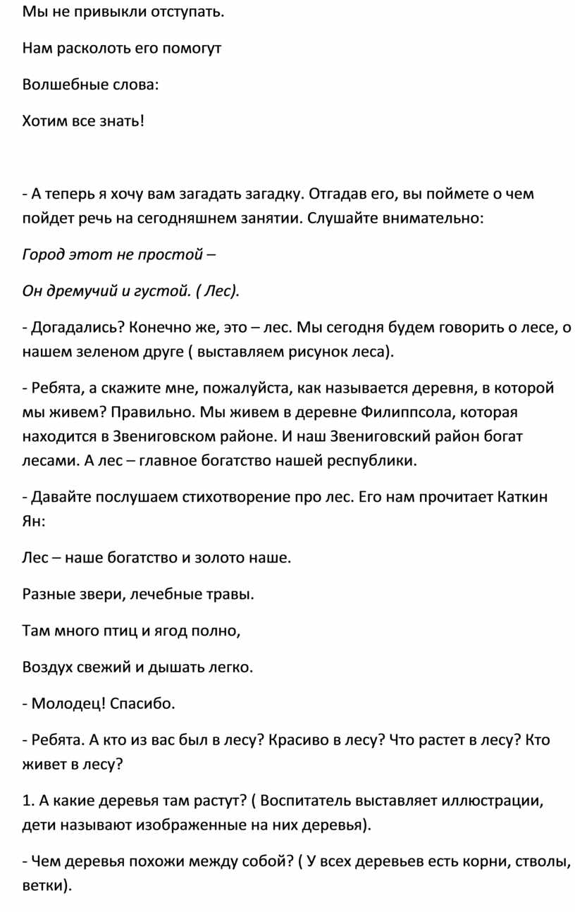 Конспект занятия «Лес – наше богатство».