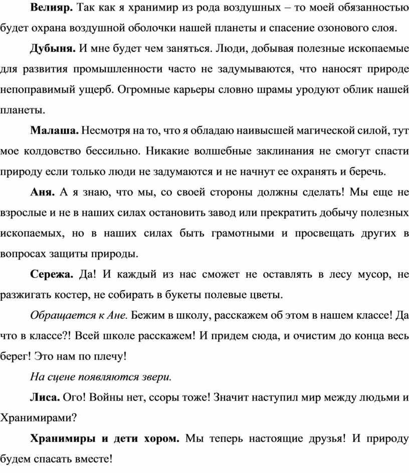 Сценарий экологической сказки