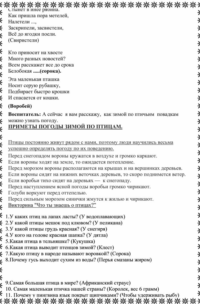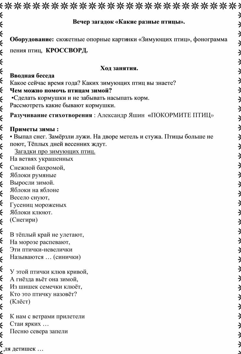про зимующих птиц.