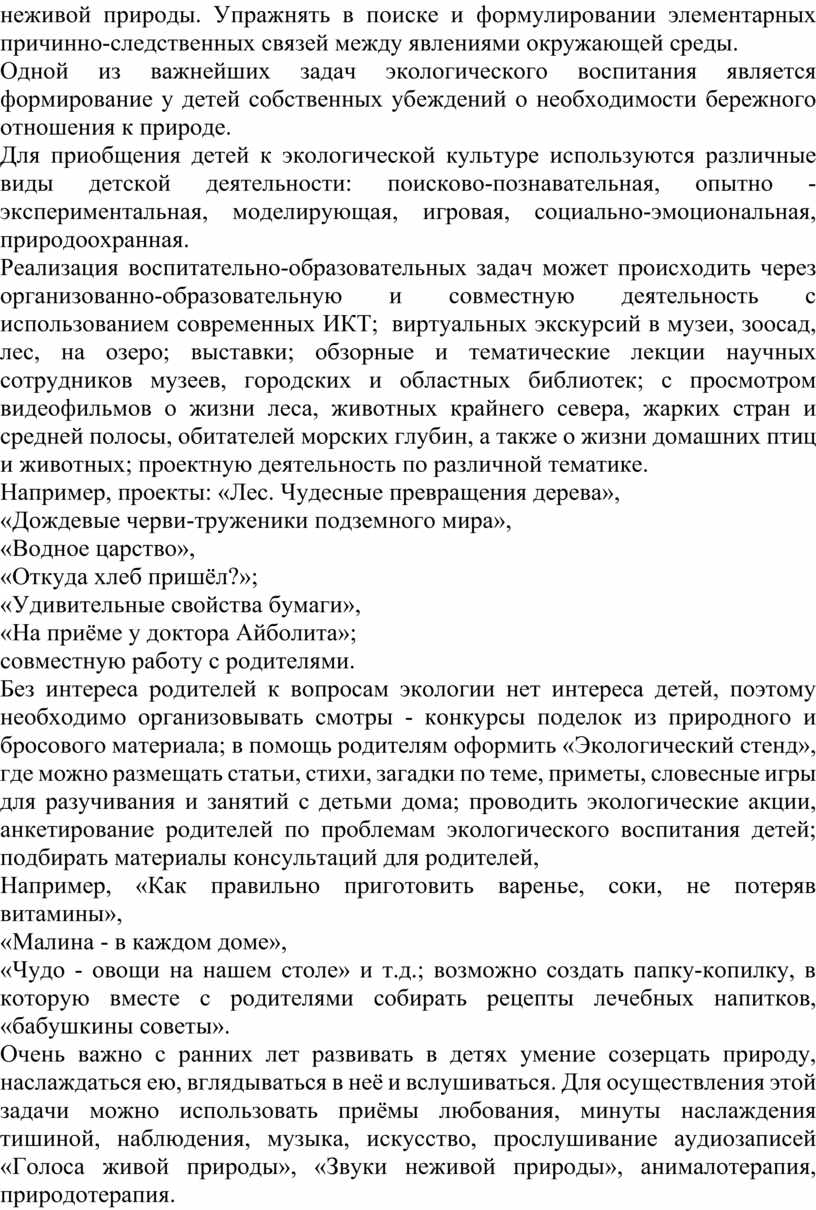 дошкольных педагогов осуществлять на практике экологическое воспитание детей,