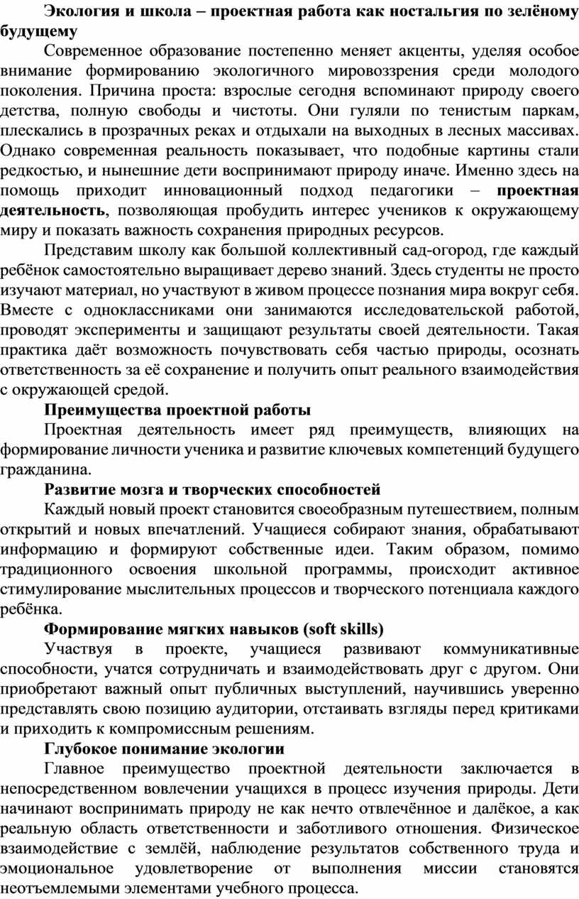Экология и школа – проектная работа как ностальгия по зелёному будущему