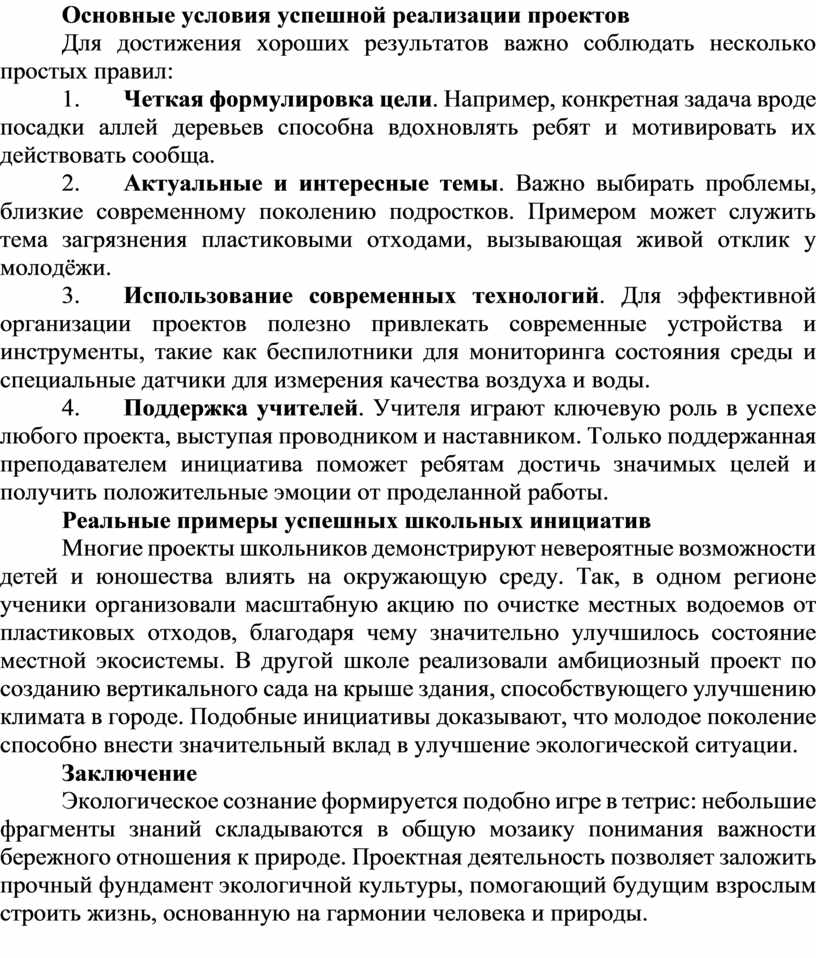 Экологическое сознание формируется подобно игре в тетрис: небольшие фрагменты знаний складываются в общую мозаику понимания важности бережного отношения к природе. Проектная деятельность позволяет заложить прочный фундамент экологичной культуры, помогающий будущим взрослым строить жизнь, основанную на гармонии человека и природы.