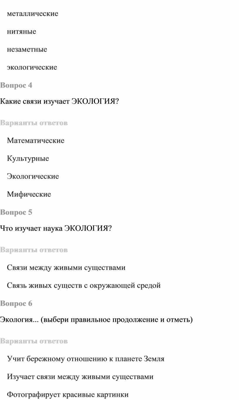 Тест по теме "Экология" в предмете "Окружающий мир"
