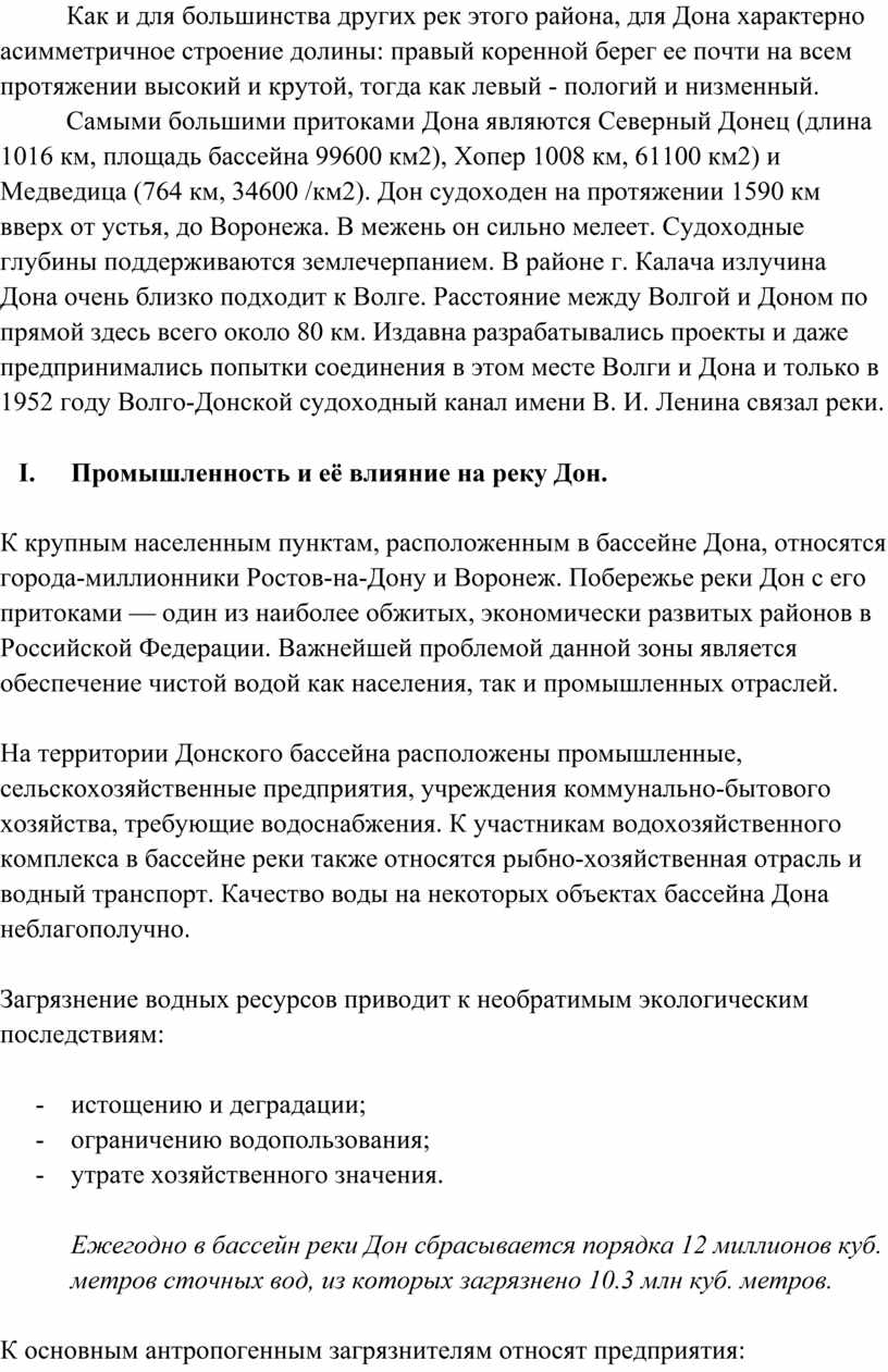II. Промышленность и её влияние на реку Дон.
