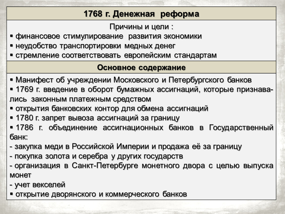 1768 г. Денежная реформа |