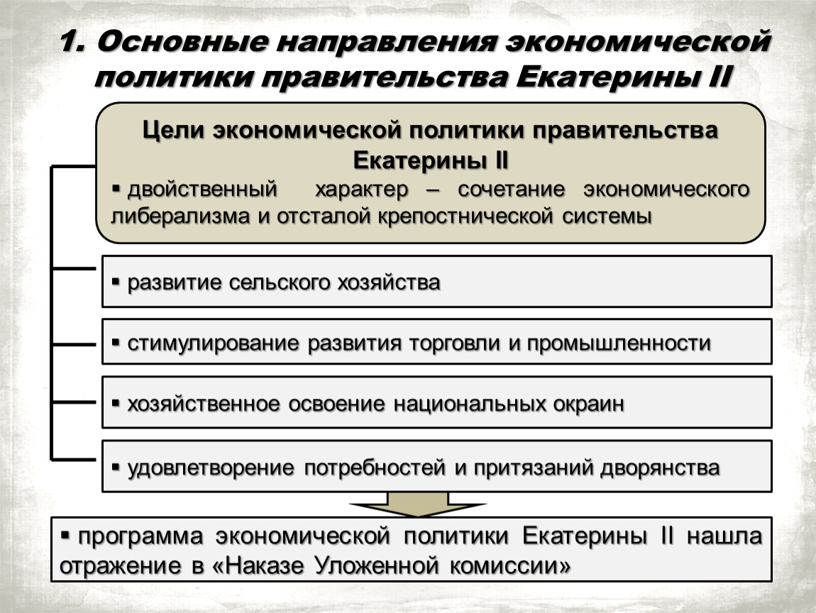 Цели экономической политики правительства Екатерины II