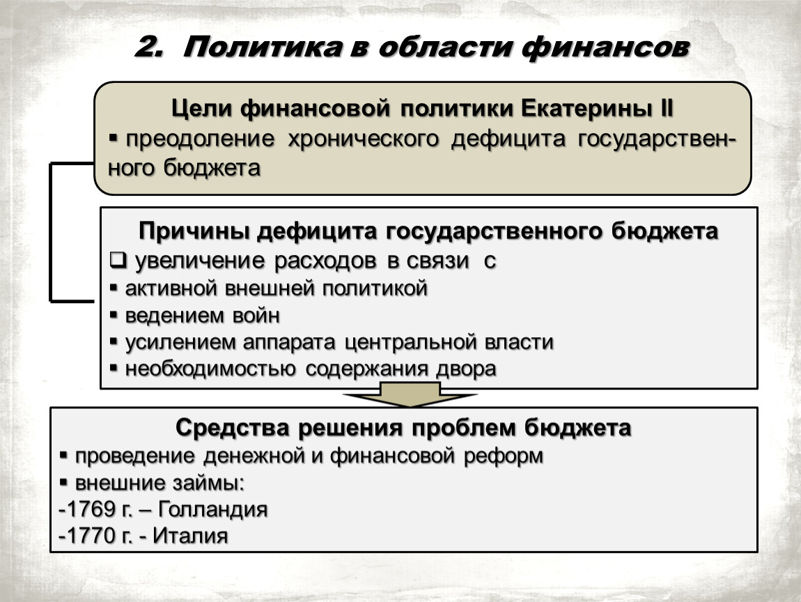 Цели финансовой политики Екатерины II