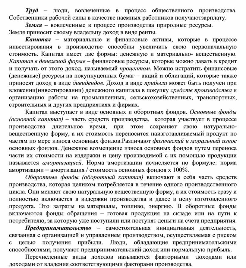1. Экономические ресурсы как факторы производства. Источники любого производства – экономические ресурсы – в экономической науке объединены в группы.