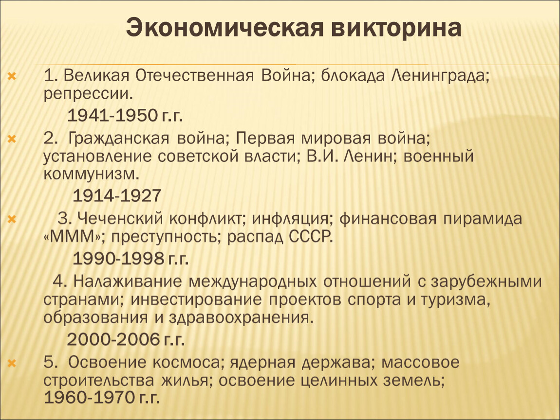 3. Чеченский конфликт; инфляция; финансовая пирамида «МММ»; преступность; распад СССР.