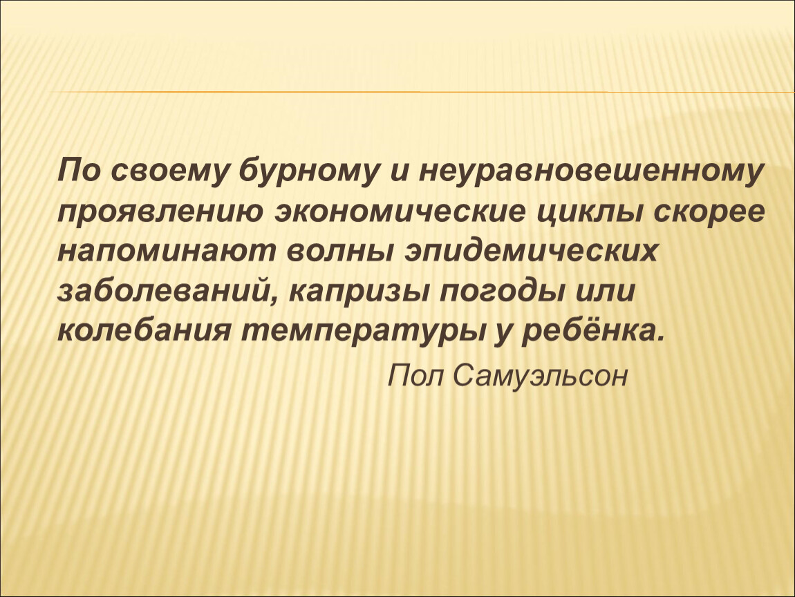 По своему бурному и неуравновешенному проявлению экономические циклы скорее напоминают волны эпидемических заболеваний, капризы погоды или колебания температуры у ребёнка.