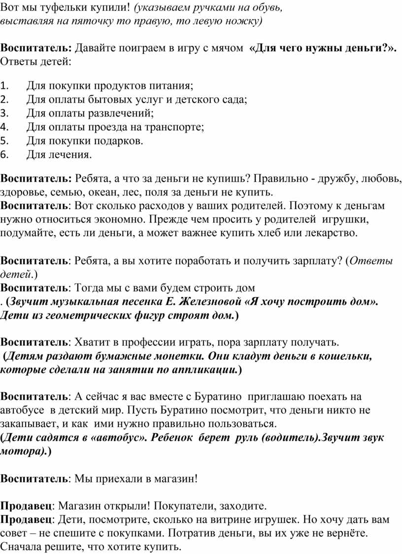 Воспитатель: Ребята, а вы хотите поработать и получить зарплату? (Ответы детей.)