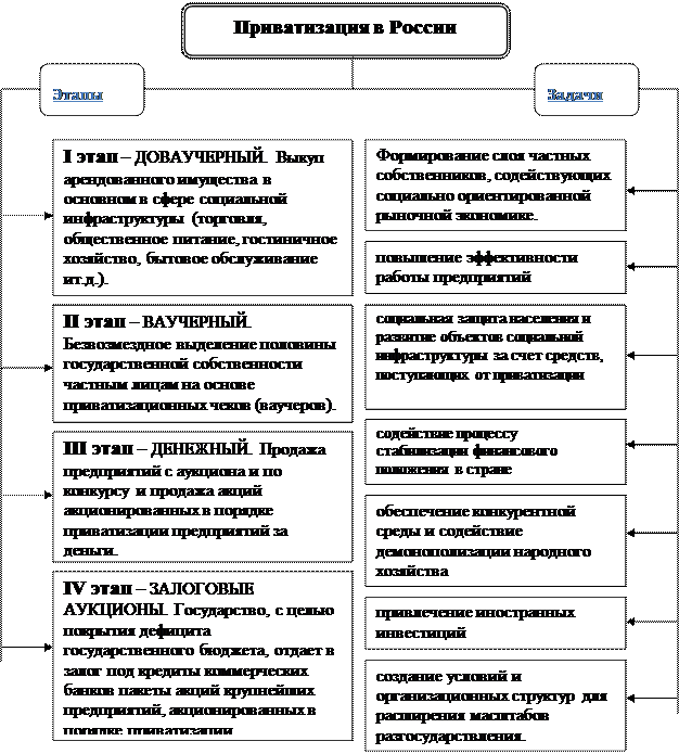 Разгосударствление – это переход от преимущественно государственно-директивного управления к рыночным методам регулирования производства и других сторон жизни. Включает в себя следующие институциональные преобразования: приватизацию, демонополизацию, проведение разукрупнения государственных предприятий, развертывание малой приватизации, подготовку и проведение большой приватизации.