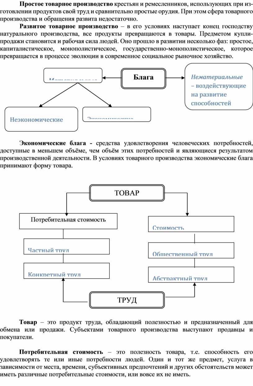 Товар – это продукт труда, обладающий полезностью и предназначенный для обмена или продажи. Субъектами товарного производства выступают продавцы и покупатели.