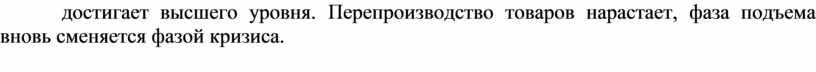 Подъем – производство растет на основе повышения цен, работы на склад в расчете на продажу по более высоким ценам, происходит дальнейший рост заработной платы. Однако разрыв между общим объемом заработной платы и массой жизненных благ достигает высшего уровня. Перепроизводство товаров нарастает, фаза подъема вновь сменяется фазой кризиса.