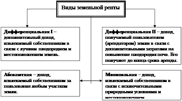 Земельная рента – экономическая форма реализации права собственности на землю, сдаваемую во временное пользование арендаторам.