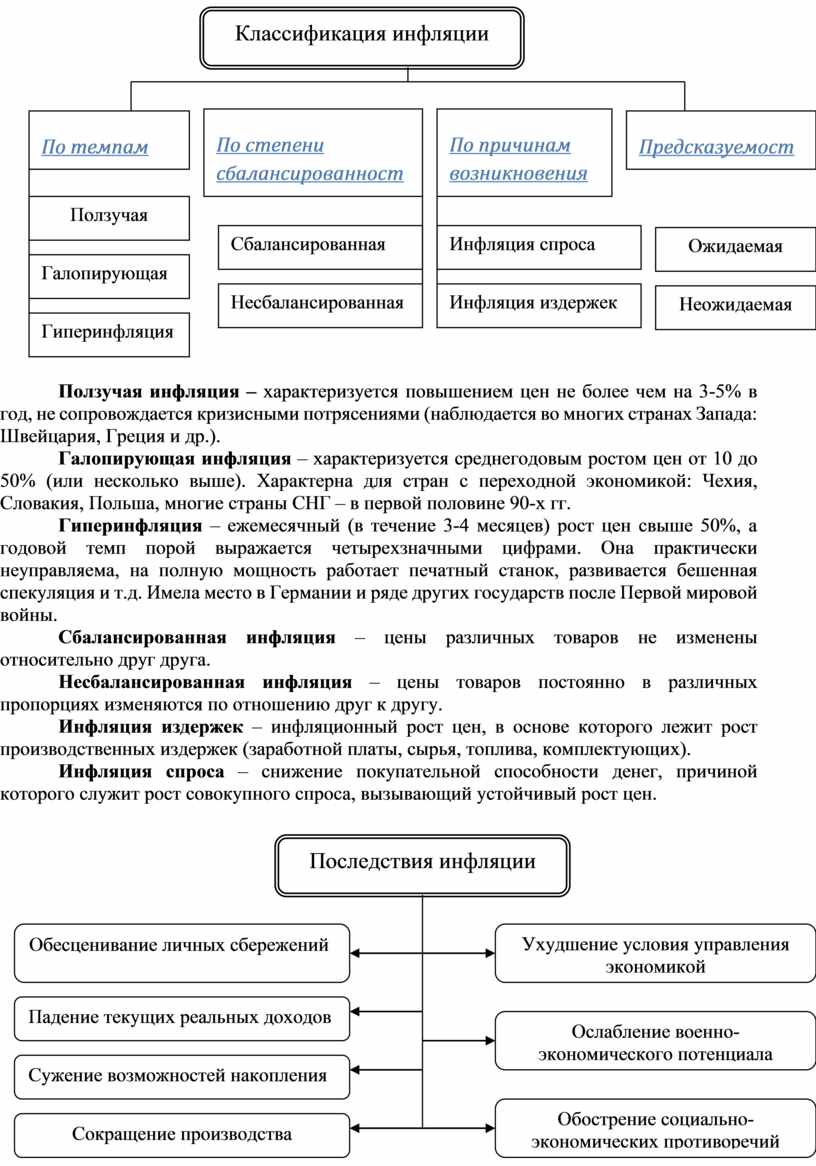Несбалансированная инфляция – цены товаров постоянно в различных пропорциях изменяются по отношению друг к другу.