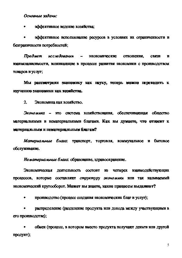 как науку и как хозяйство, познакомились с основной проблемой и тремя вопросами
