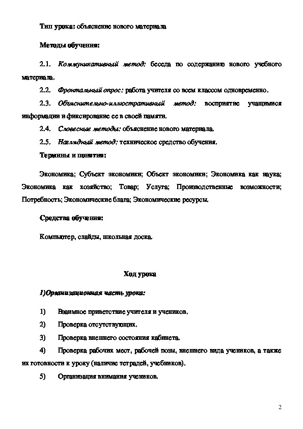 2.4. Словесные методы: объяснение нового материала.