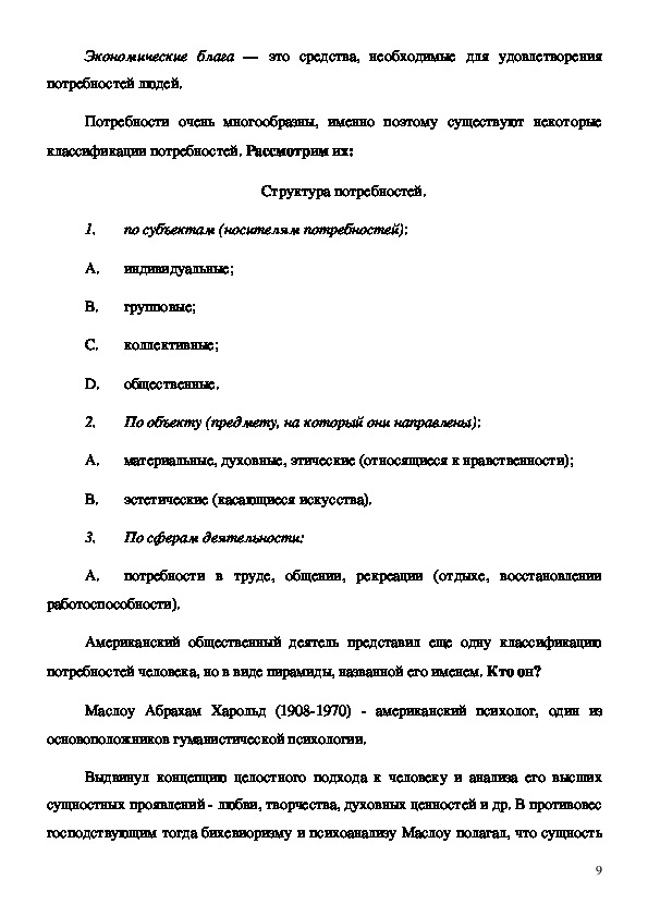 5. Потребности и ресурсы. Классификация потребностей. Экономические